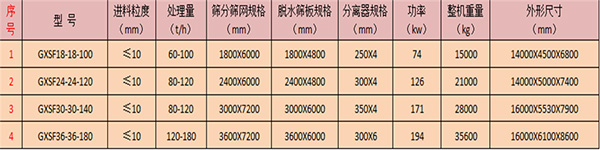 物料人工砂或天然砂,可經皮帶給料到篩分篩,在篩分篩上加水沖洗,物料在振動力及重力作用下完成篩分作業,篩下物料經由篩下水箱及流槽輸送至脫水篩上,進行脫水、回收作業,同時在流槽中可鋪設粘金毯或加入磁選機等設備,將物料中有價值的成分提取出來,提高經濟效益。